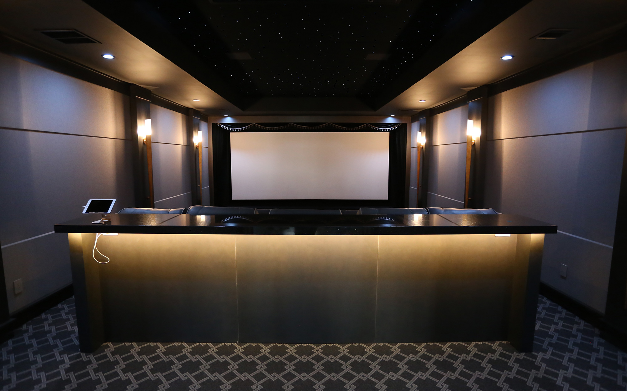 While the images are stellar, the highlight of both theaters is the audio. Ragulan took advantage of the complimentary Meridian Design & Specification Service, and Meridian came to the site more than 10 times to make sure the project was on track, taking a special interest in how the Tri-Stack system works. “The staging of the front was elevated to a sweet spot in the center row, with the third row being a bench with a bar. We’ve done quite a few Meridian theaters, but this one is the best.” Complementing the nine DSP520 in-wall loudspeakers are two subwoofers located in the front stage, giving the room plenty of bass response to complement the Tri-Stack system.
