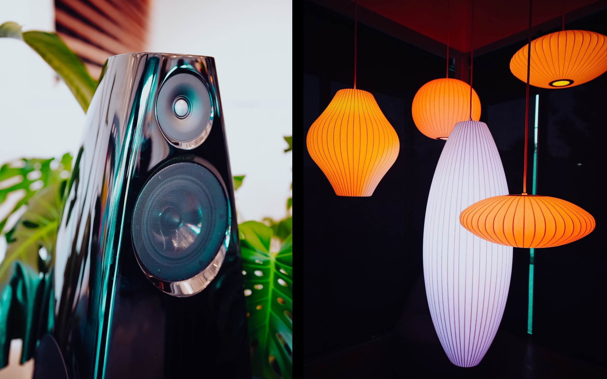 Two pairs of multi-award-winning Meridian Audio DSP9 Loudspeakers, finished in Piano Lacquer Black and Volcano Orange, immersed diners in authentic, natural, and lifelike sound throughout the venue.