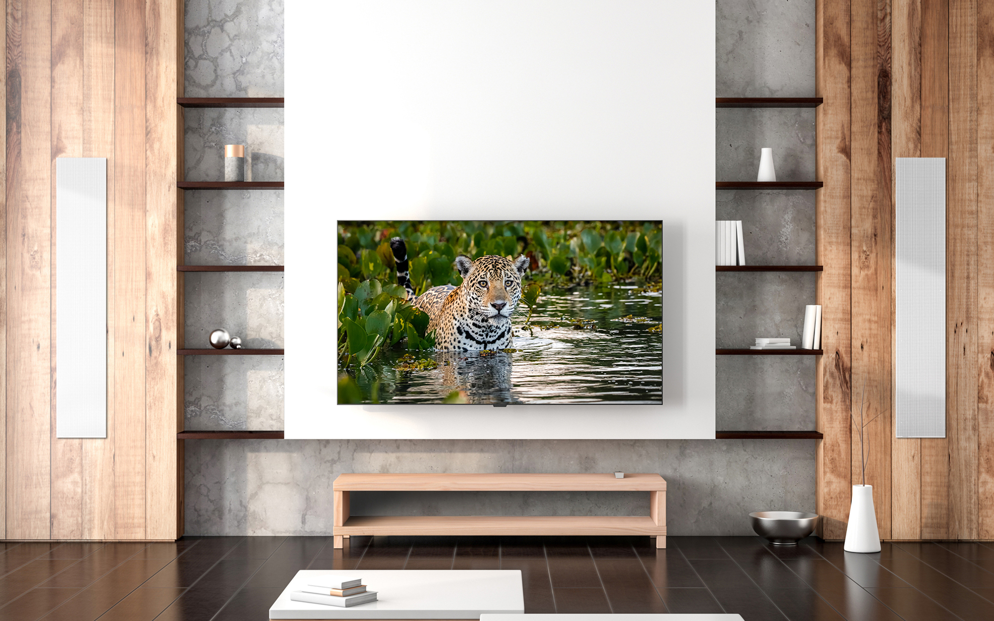 Image Elevation psychoacoustically raises the sound image to the centre of a screen – where the listener would expect to hear it from.
