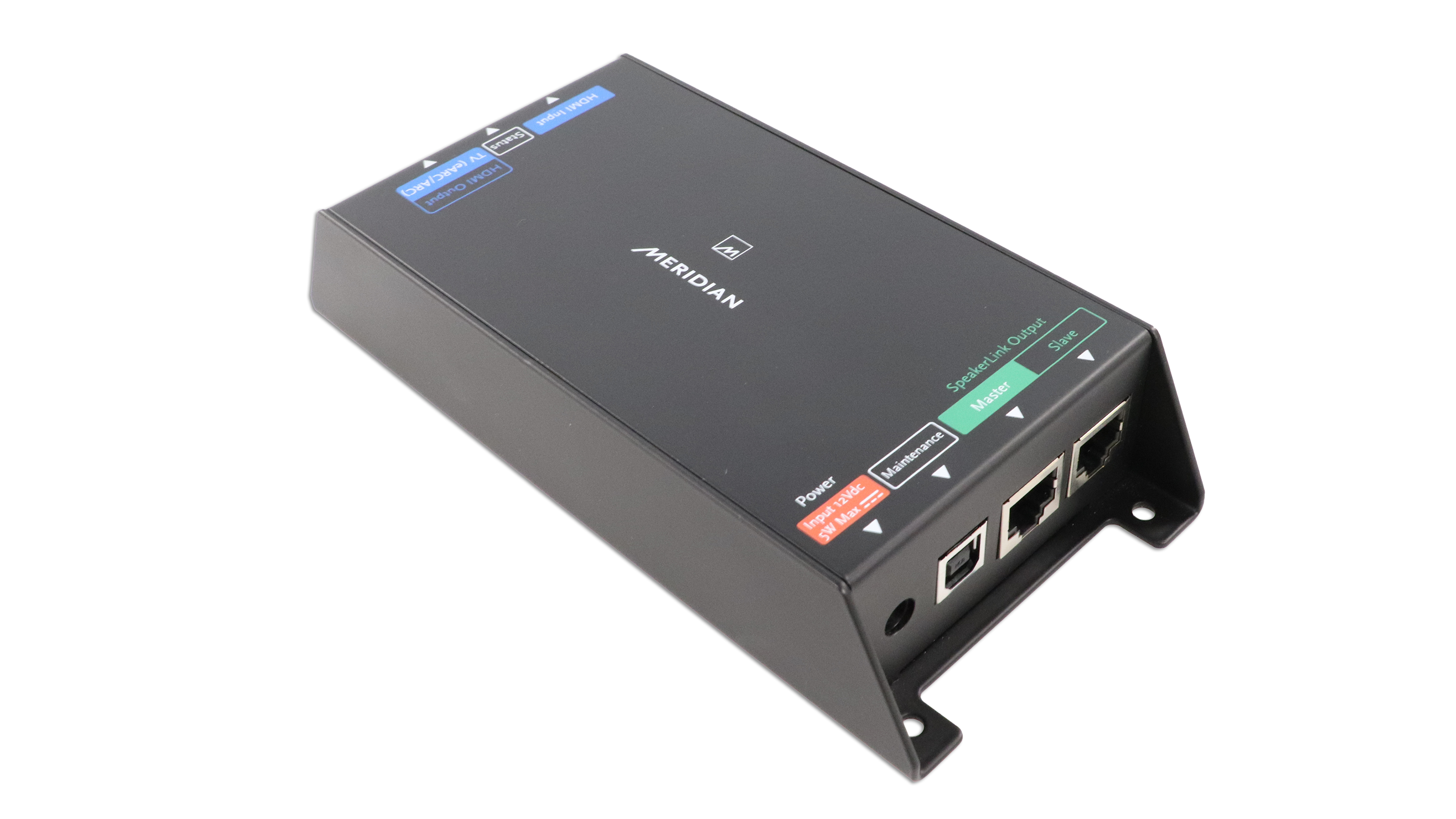 Compact and discreet, the UHD121 connects directly between a TV’s HDMI eARC/ARC port and Meridian DSP loudspeakers via SpeakerLink. Fully CEC enabled, the system powers on and off with the TV, and volume is controlled from the TV’s own remote. This delivers a seamless experience: high-performance sound with simple, intuitive control — no extra remotes, no additional steps. Unlike generic eARC adapters, UHD121 is a manufacturer-engineered, audiophile-grade controller designed for integrators and the Meridian DSP ecosystem.